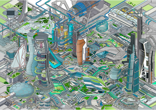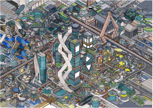 Tomorrowland – Isometric Futuristic Cityscape Art Print